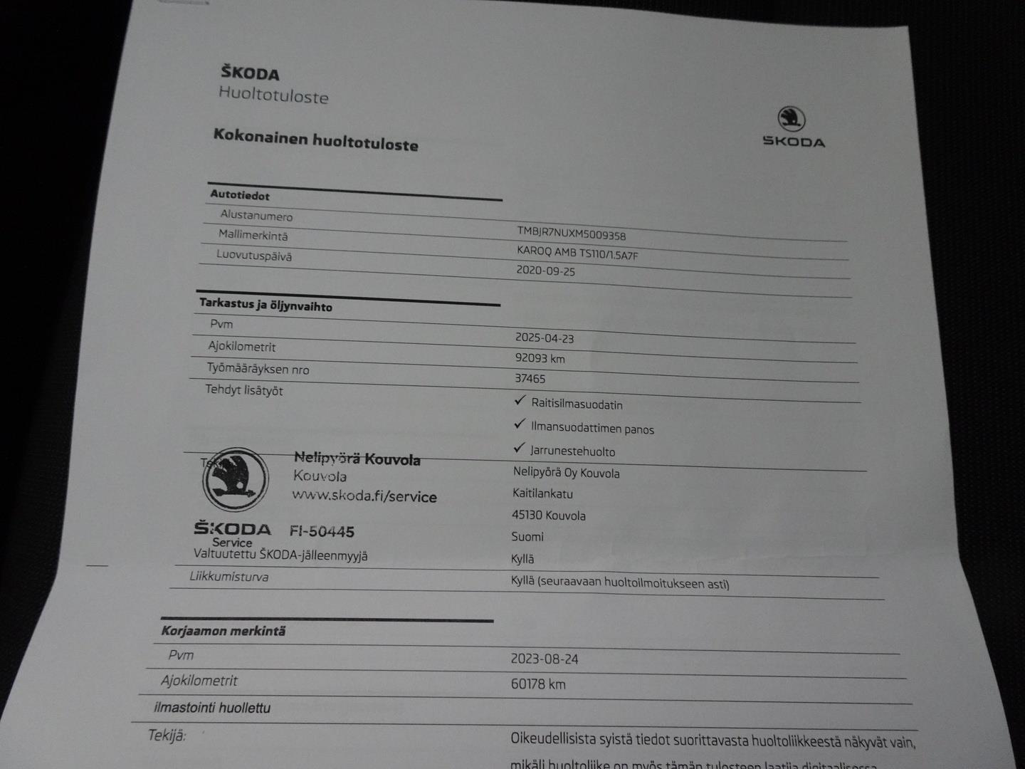 Viimeisin huolto 4/25 |