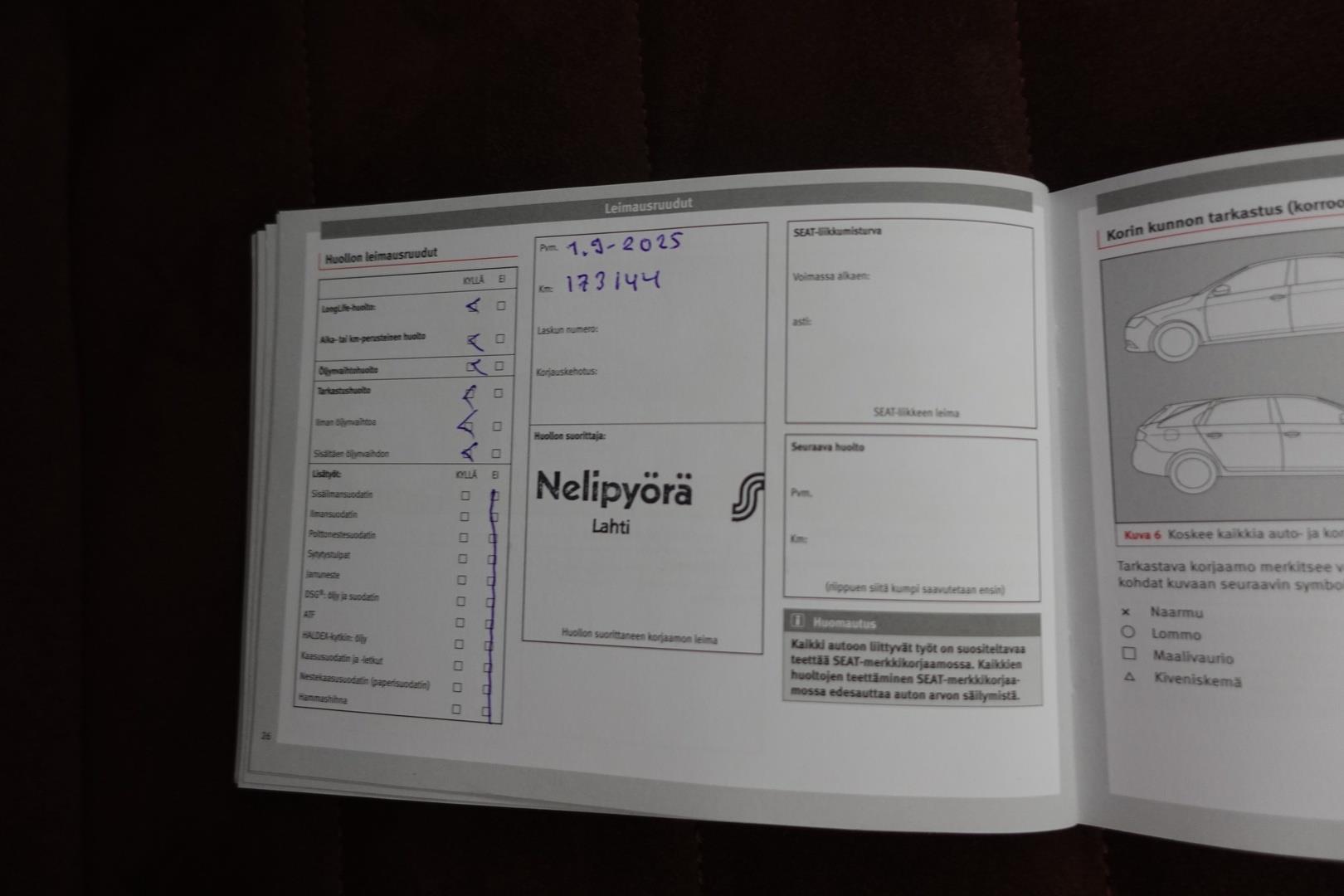 Viimeisin huolto 173144km / 1.9.2025 |