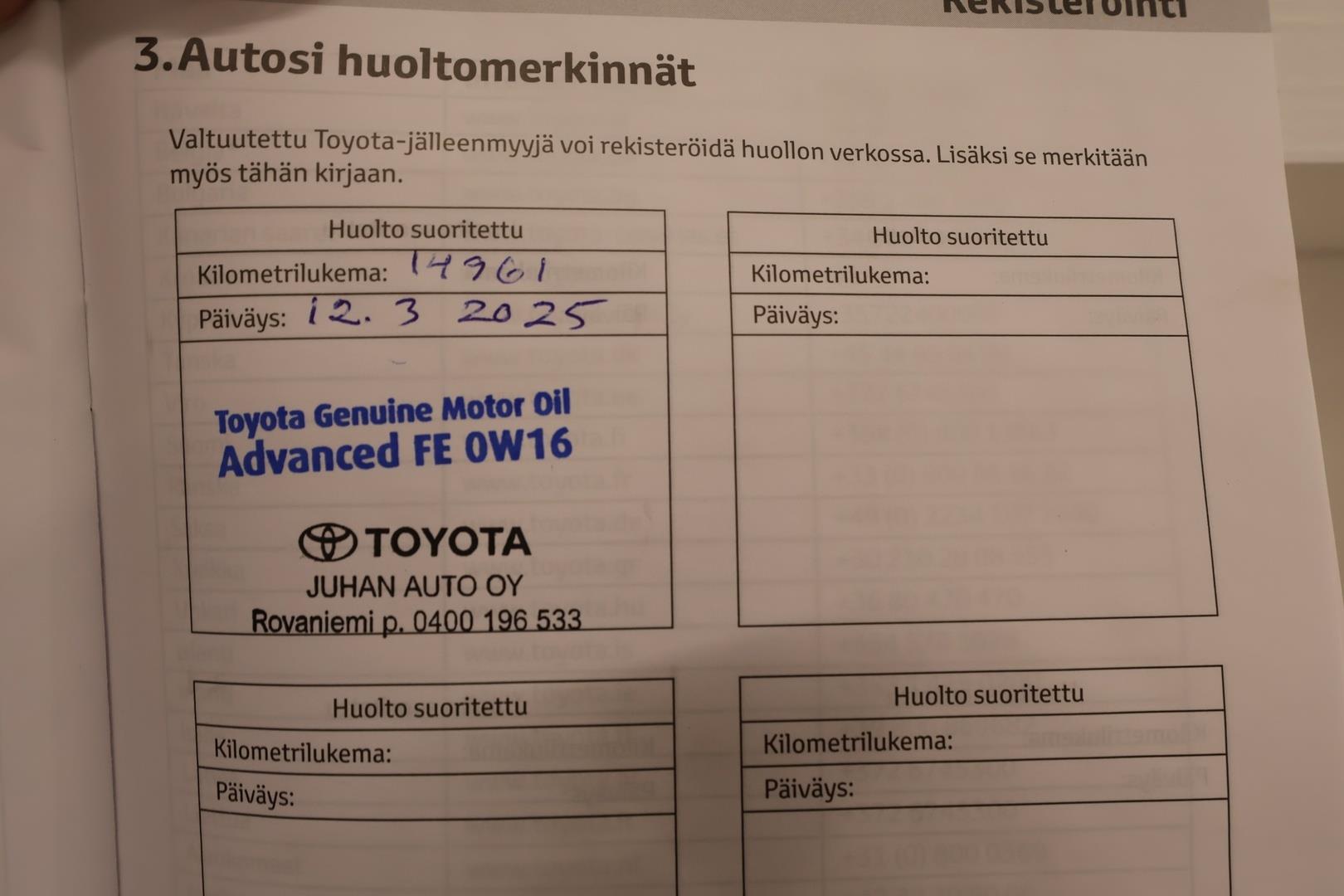 Täydellinen merkkiliikkeen huoltokirja |