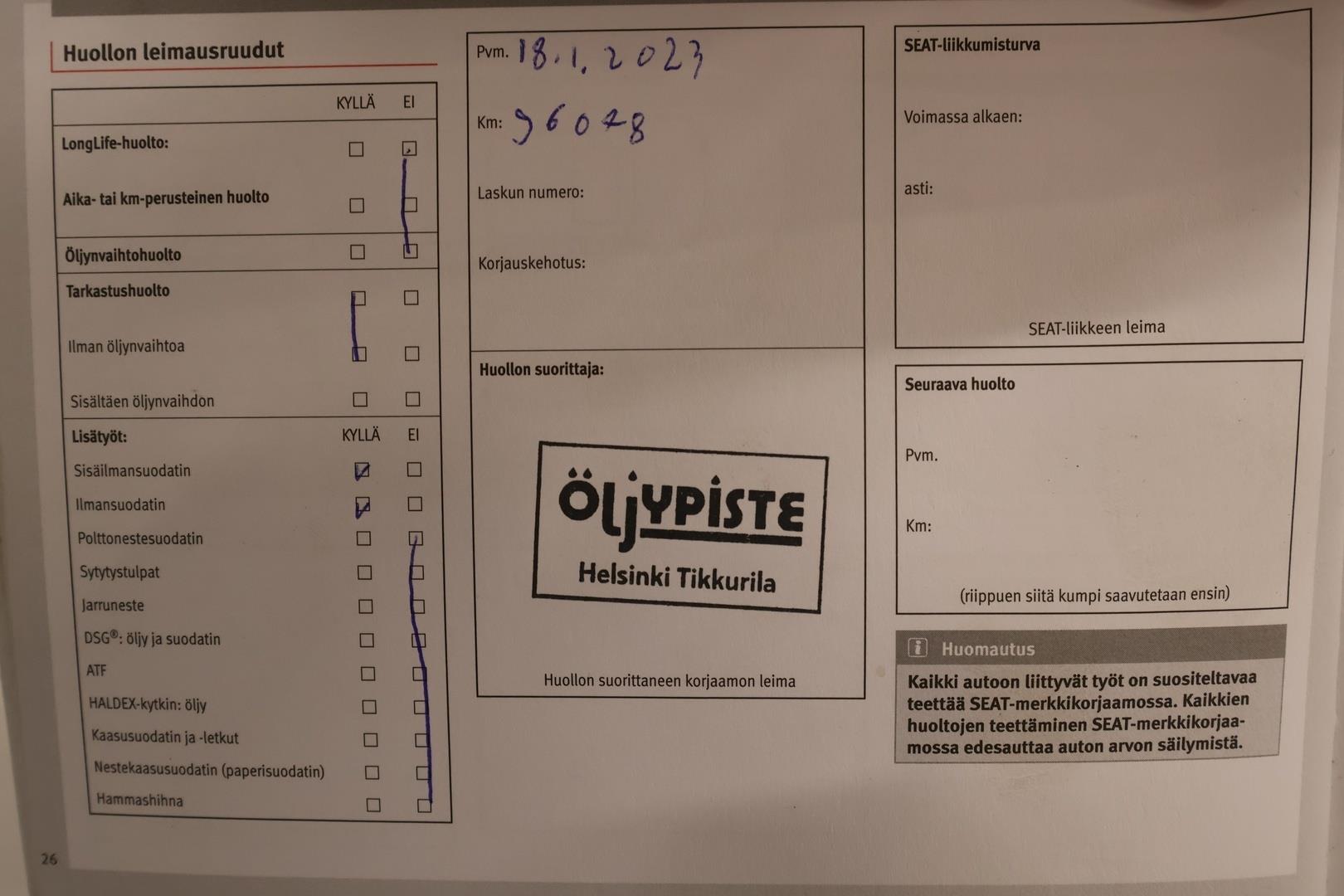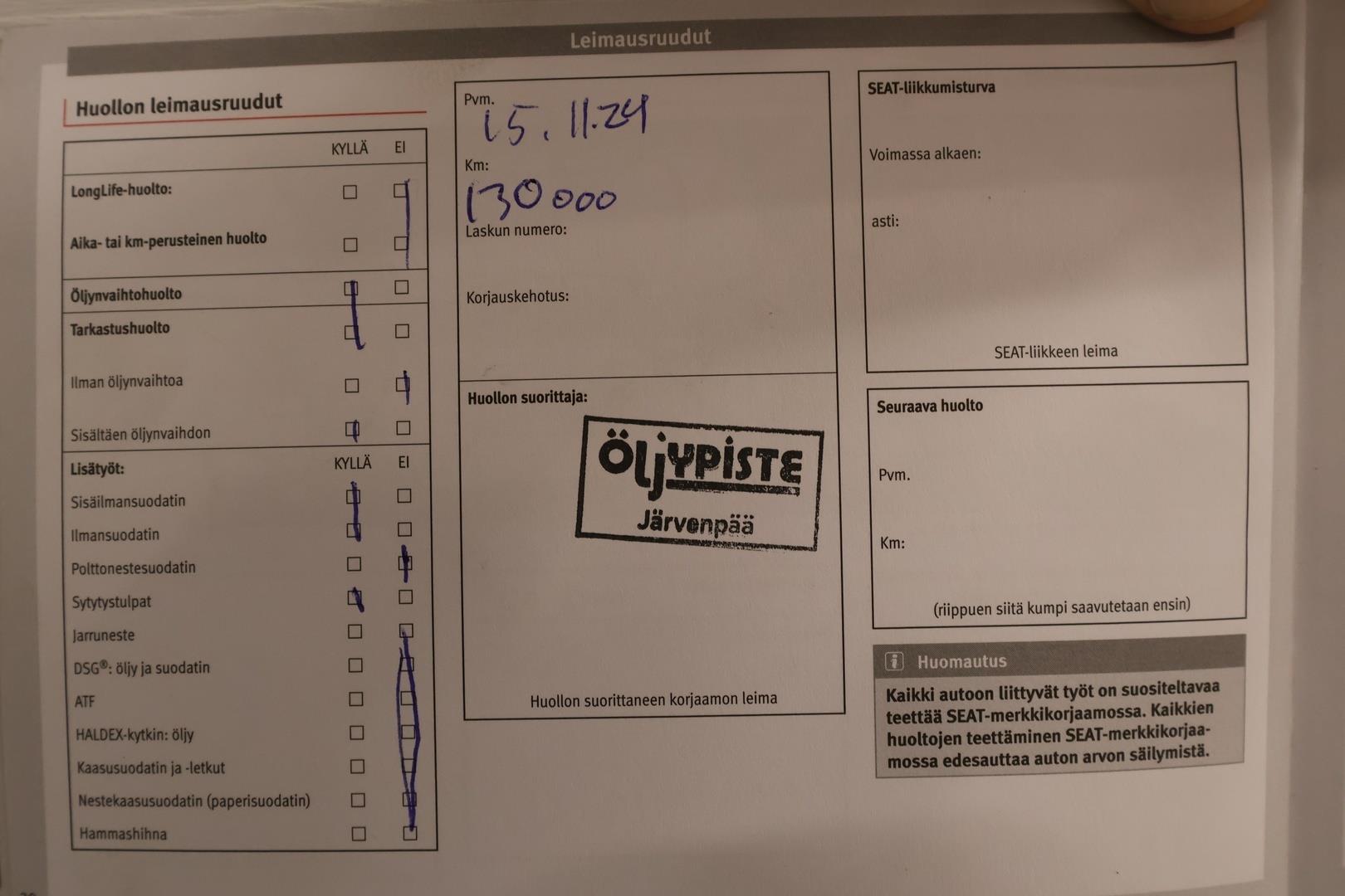 Täydellinen huoltokirja |