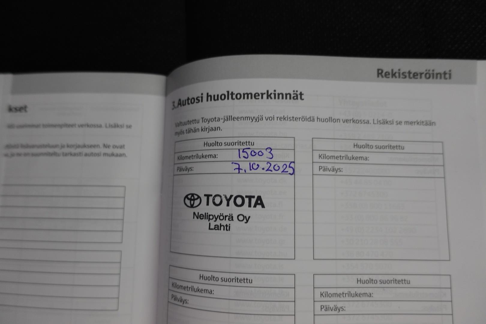 | Viimeisin huolto 15002km / 7.10.2025 |