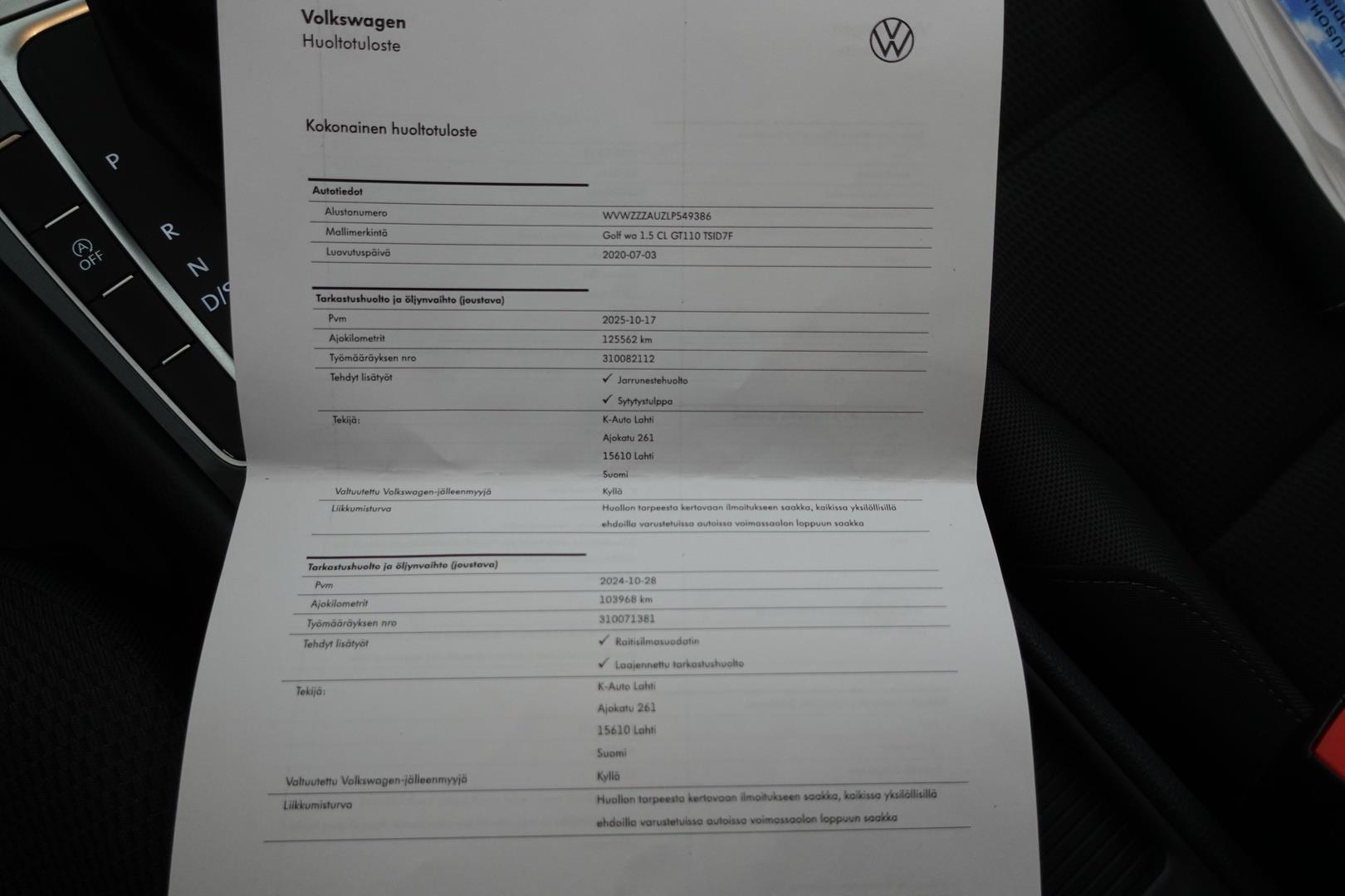 | Viimeisin huolto 125562km / 17.10.2025 |