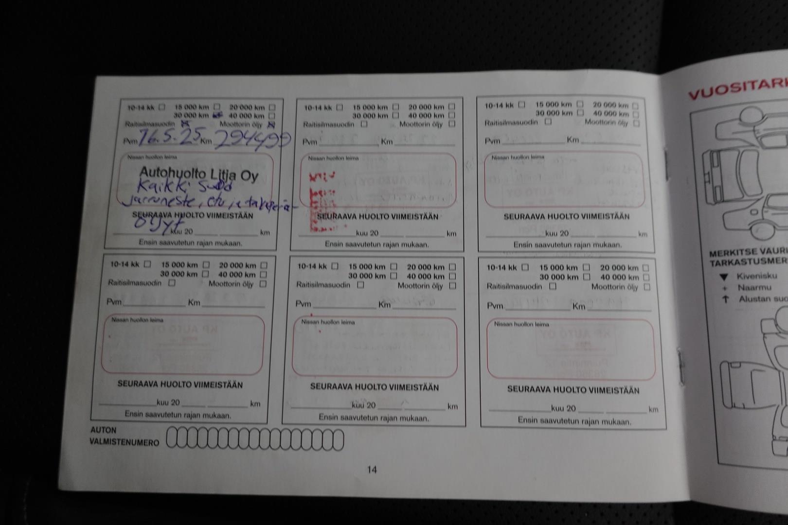 | Viimeisin huolto 294499km / 16.5.2025 |