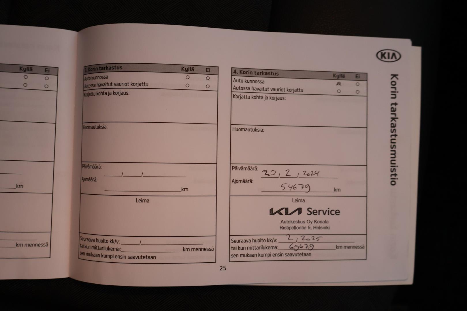 | Merkkiliikkeen huoltokirja - Viimeisin huolto tehty 05-2025 |