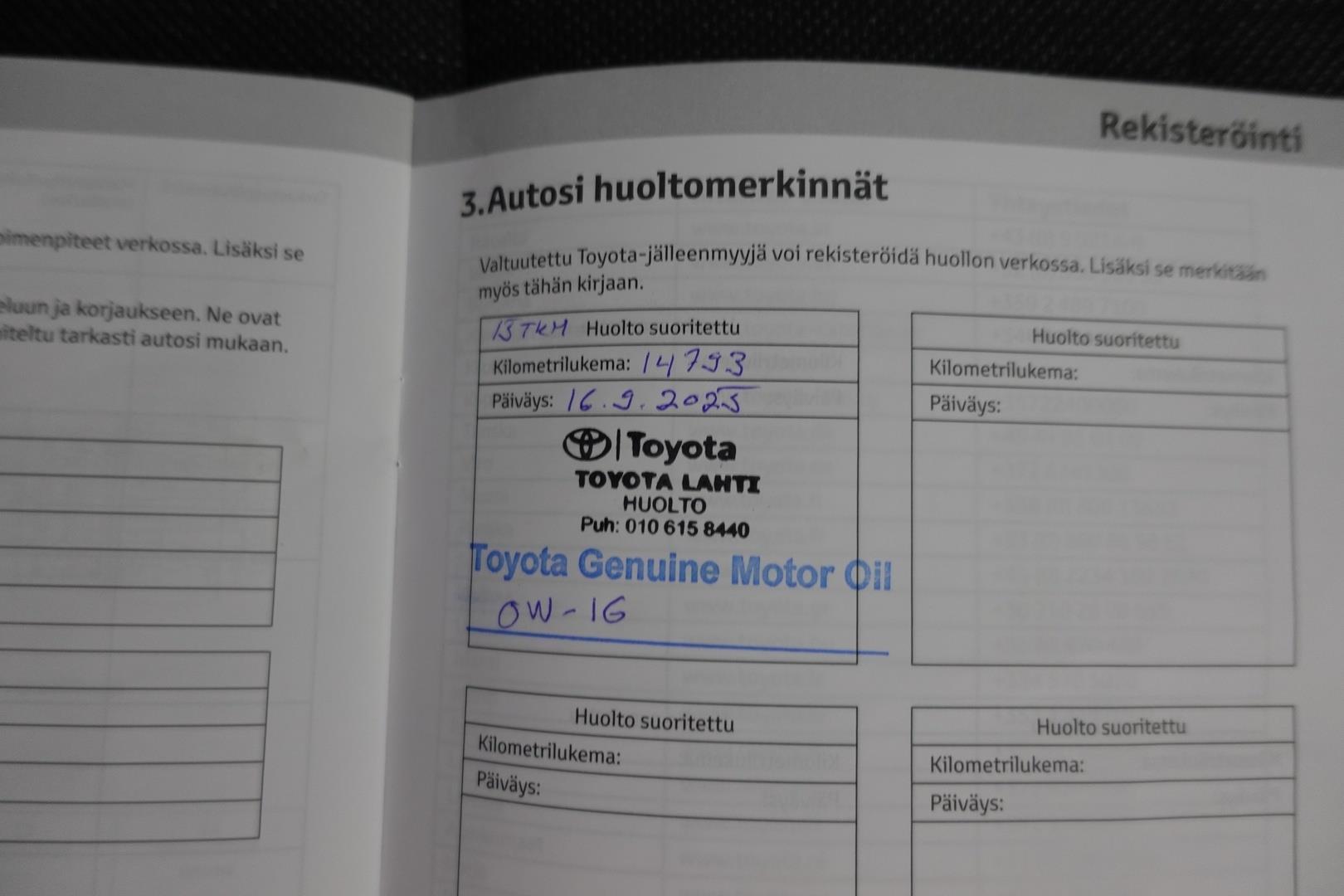 | Viimeisin huolto 14793km / 16.9.2025 |