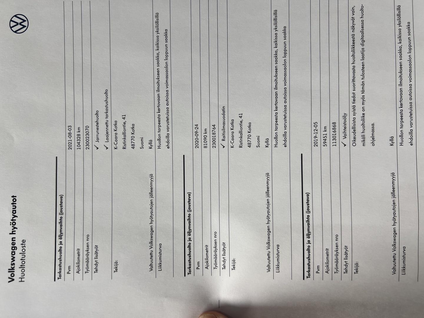 | Huoltokirja |