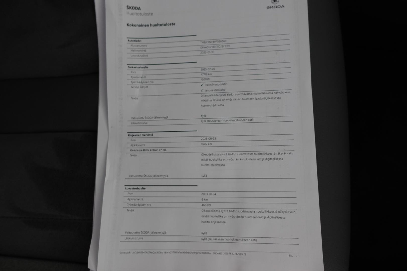 | Viimeisin huolto 47719km / 26.2.2025 |