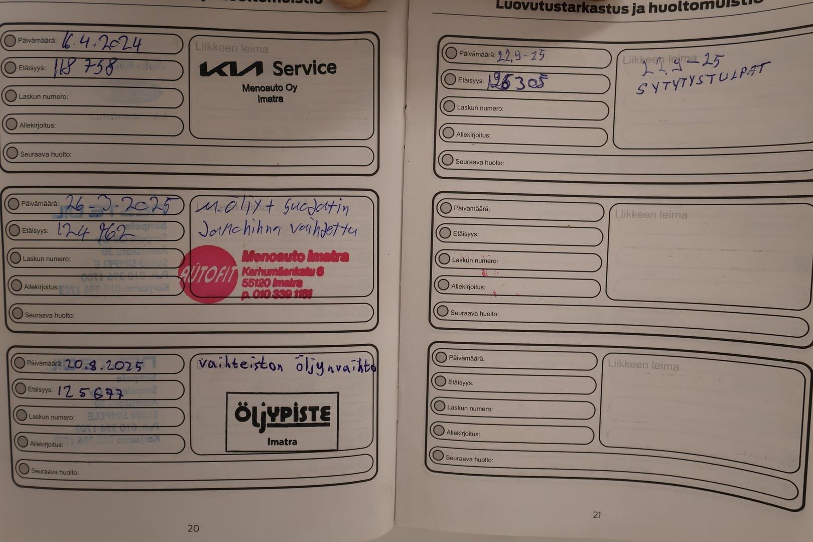 | Täydellinen huoltokirja |