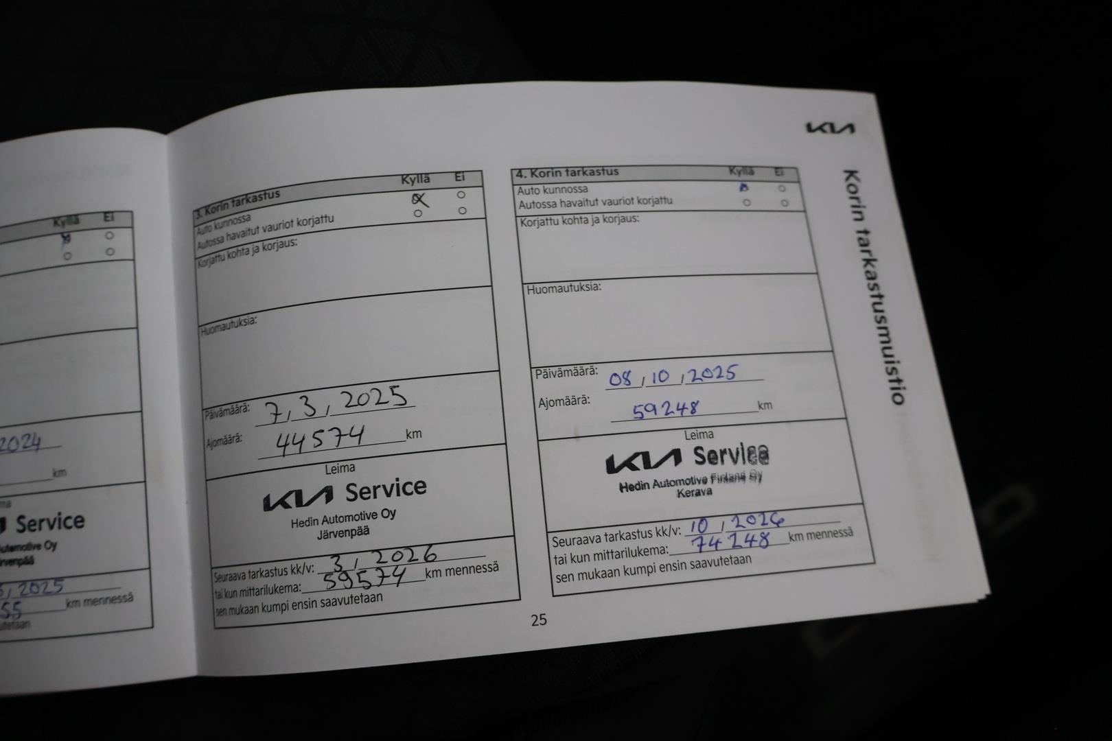 | Merkkiliikkeen huoltokirja - Viimeisin huolto tehty 10-2025 / 60tkm |