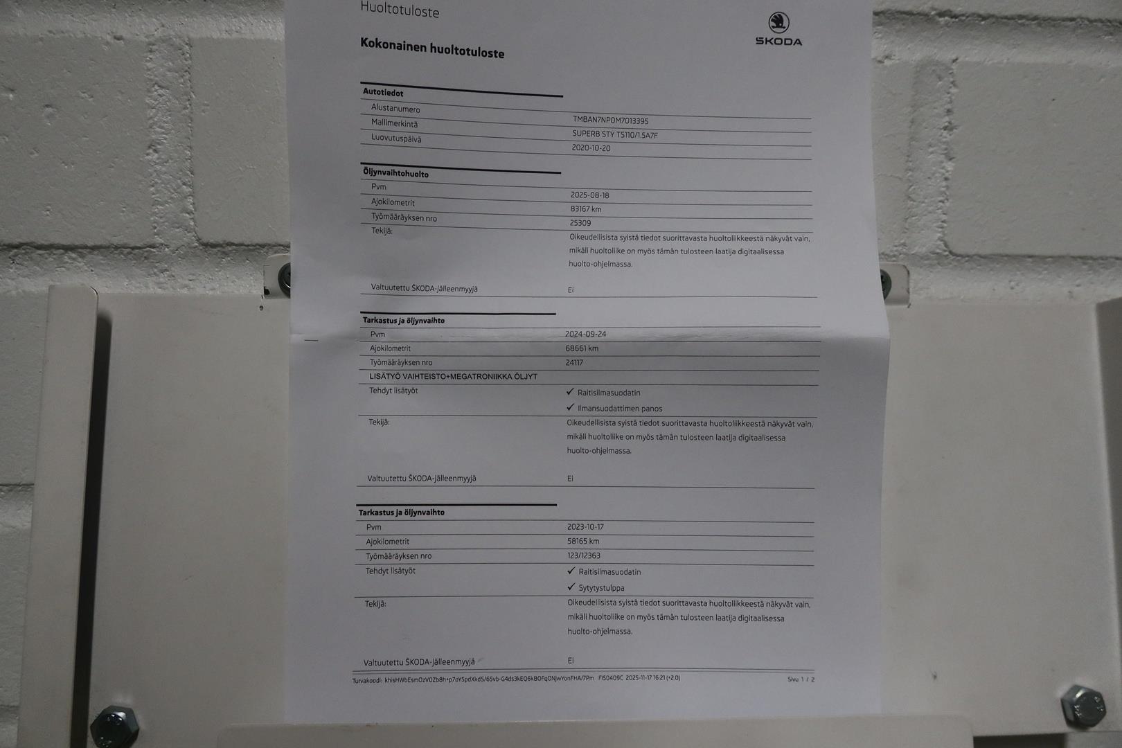 | Viimeksi huollettu 08/25 83200km |
