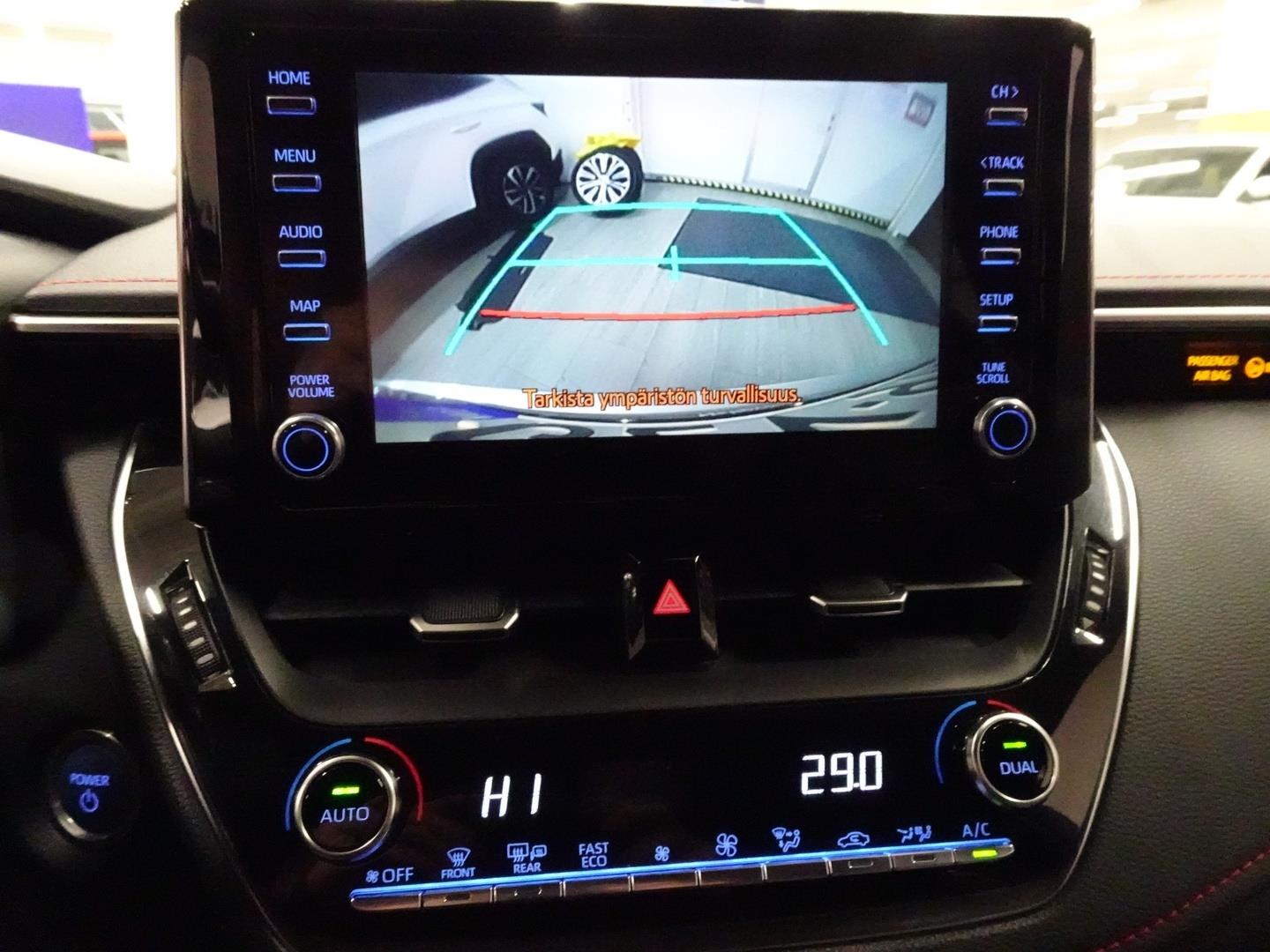| Peruutuskamera opastinviivoin mediakeskuksen näytöllä |