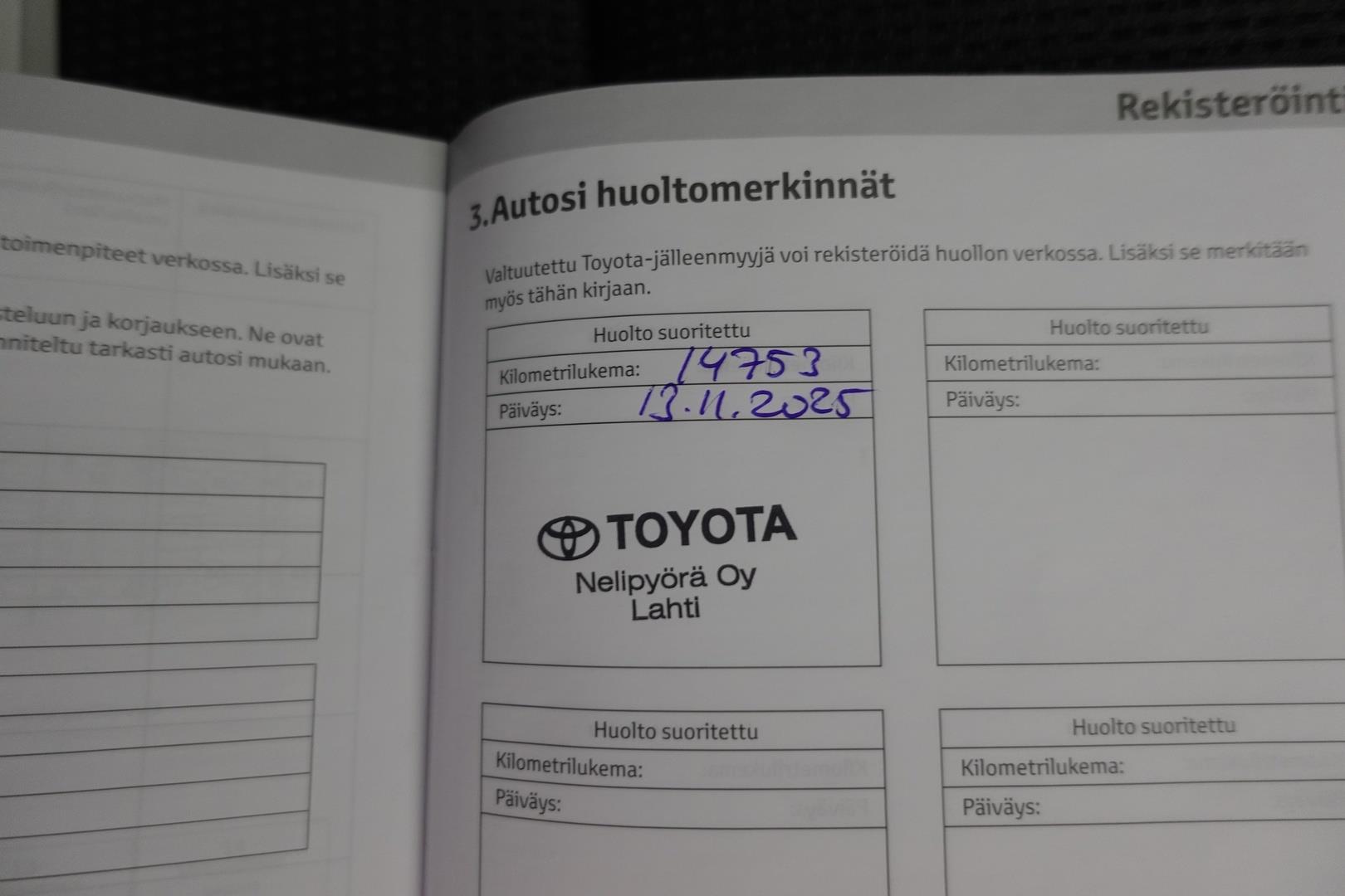 | Viimeisin huolto 14753km / 13.11.2025 |
