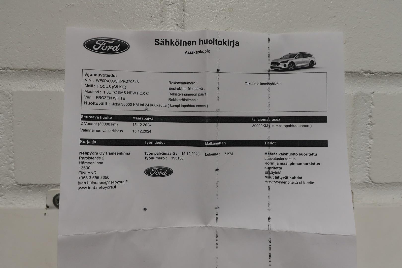 | Merkkiliikkeen huoltokirja - Viimeisin huolto tehty 10/2025/18tkm |