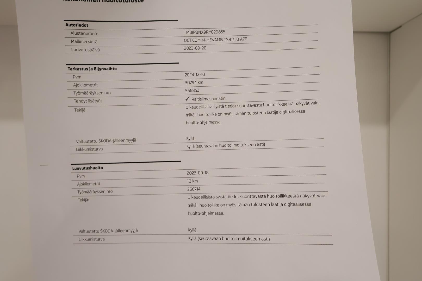 | Täydellinen merkkiliikkeen huoltokirja |