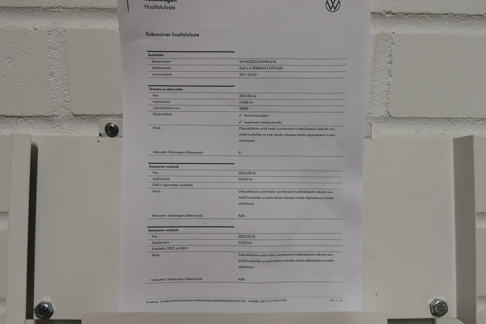 | Huoltokirja - Viimeisin huolto tehty 12/2025/109tkm |
