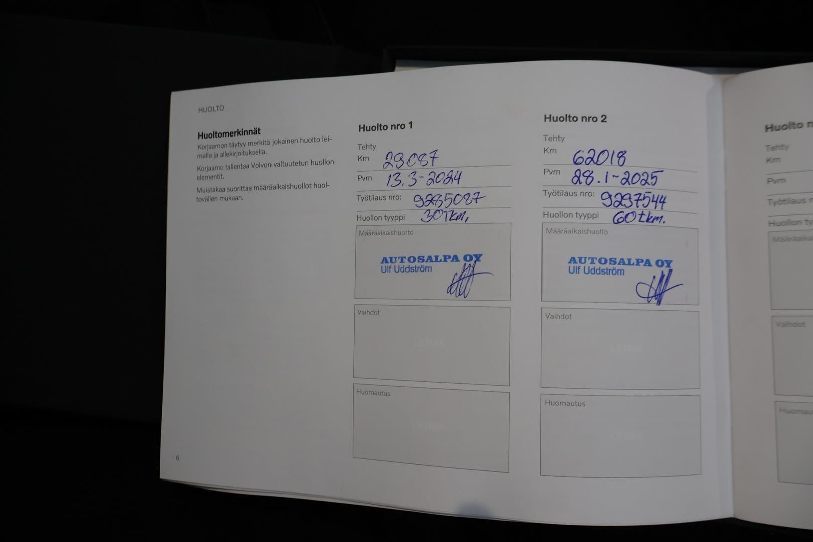 | Merkkiliikkeen huoltokirja - Viimeisin huolto tehty 01/2025 / 62tkm |