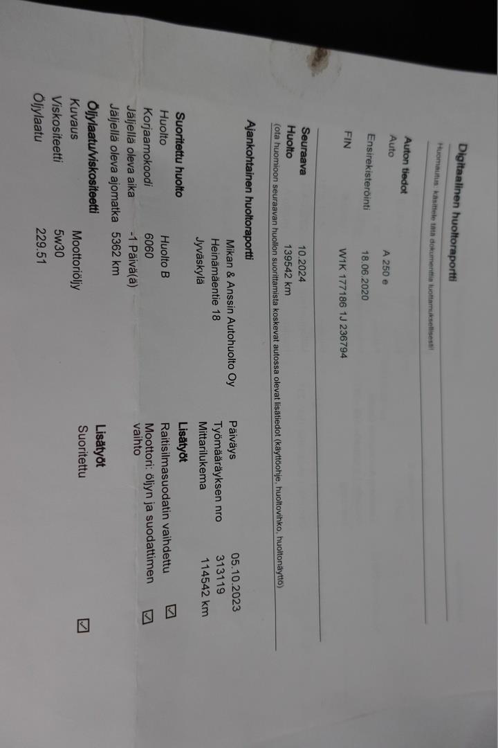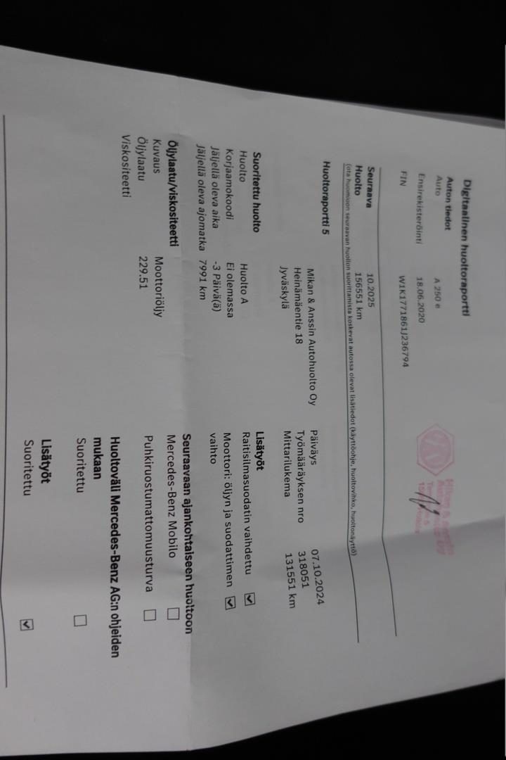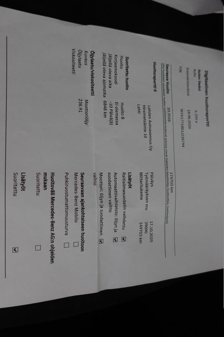 | Viimeisin huolto 149703 km / 17.10.2025 |