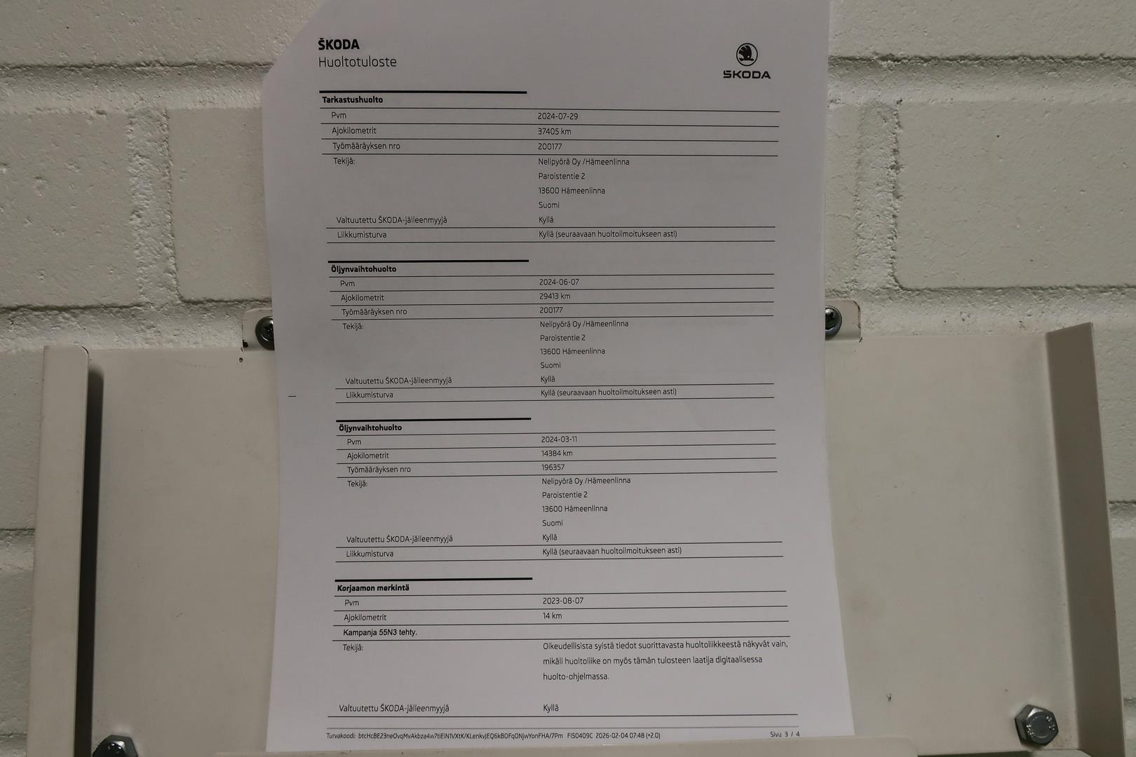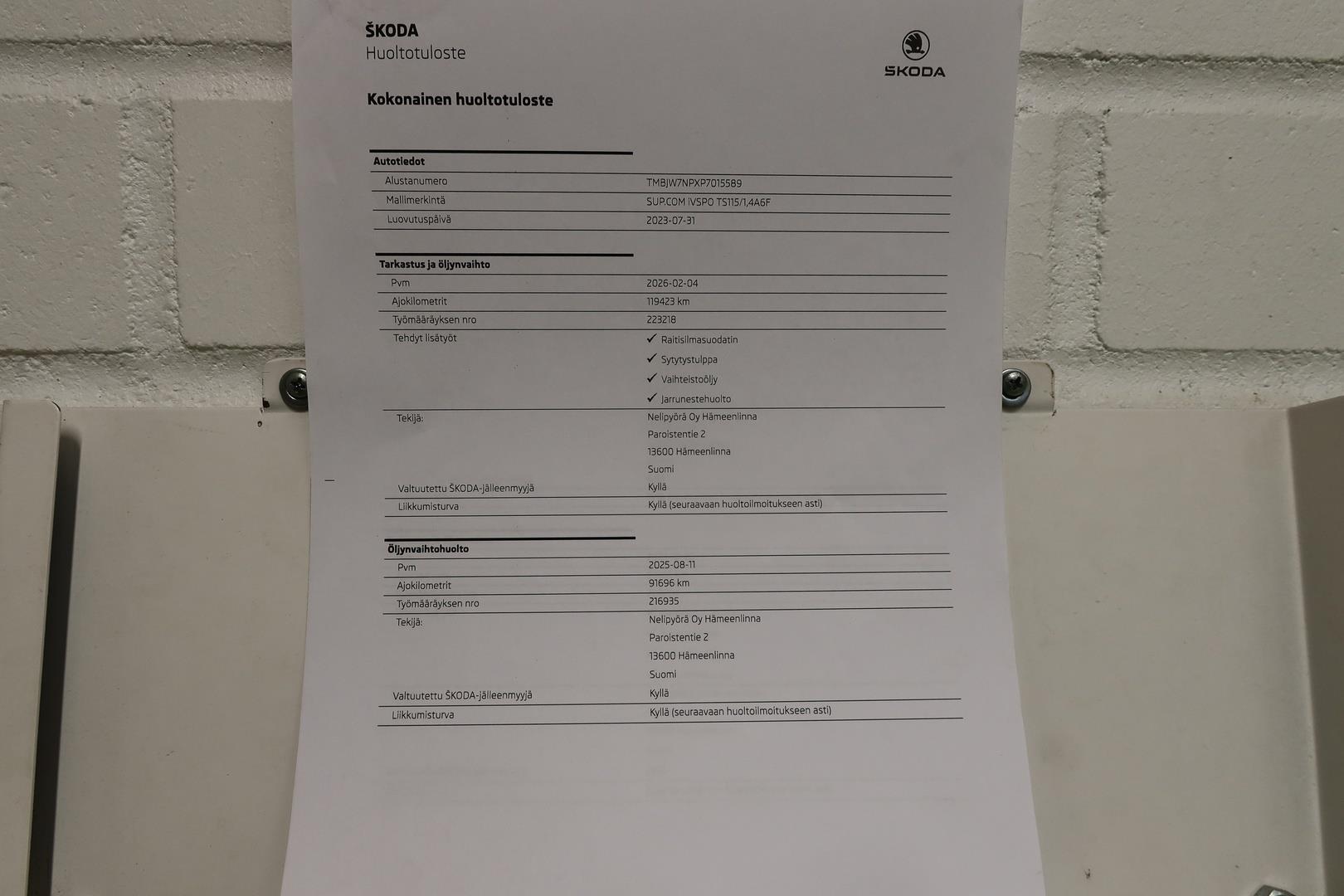 | Täydellinen merkkiliikkeen huoltokirja ( viimeisin huolto tehty 2/2026 ) |