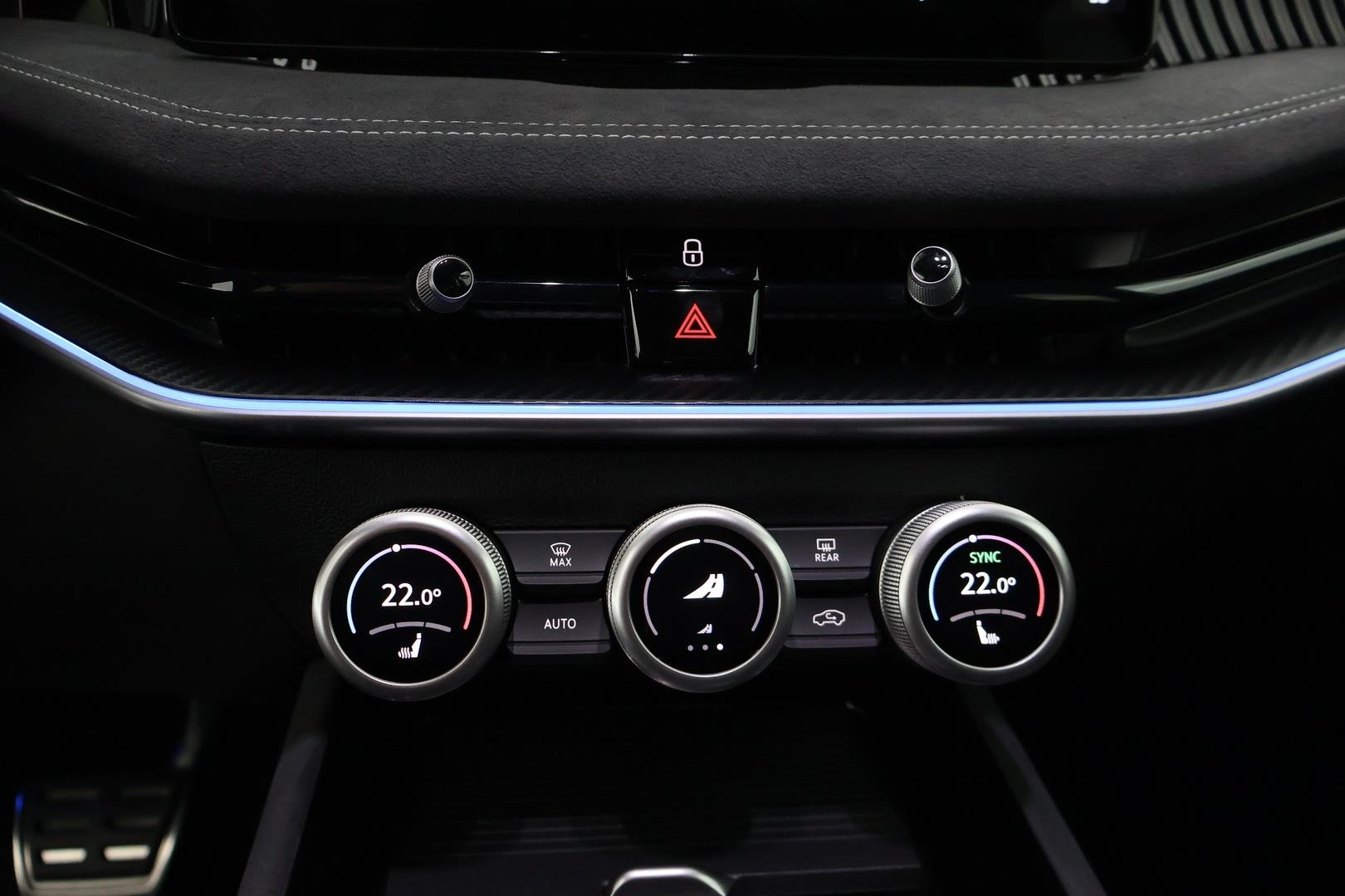 | Kojelaudan etuosan musta Suedia-mikrokuitukangasverhoilu koristetikkauksin |