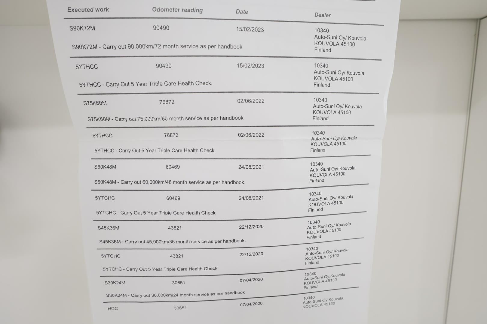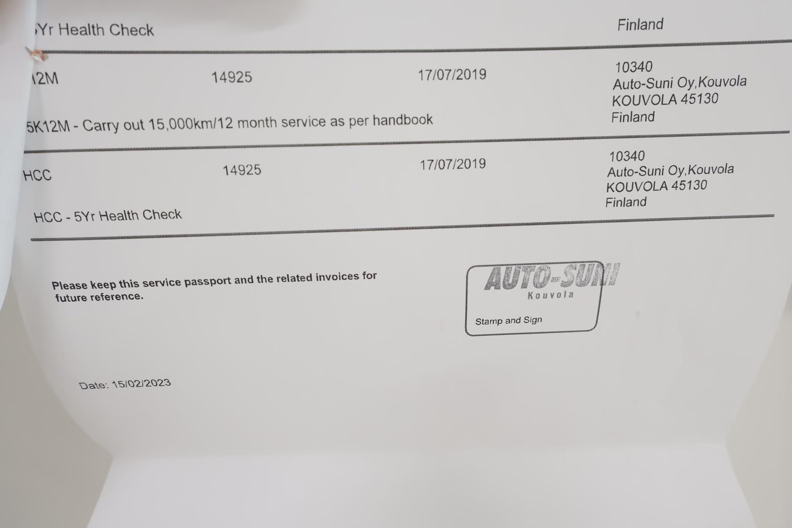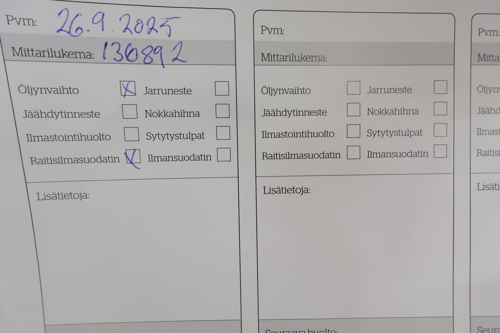 | Huoltokirja (sähköisen huoltokirjan tuloste + kirja) |