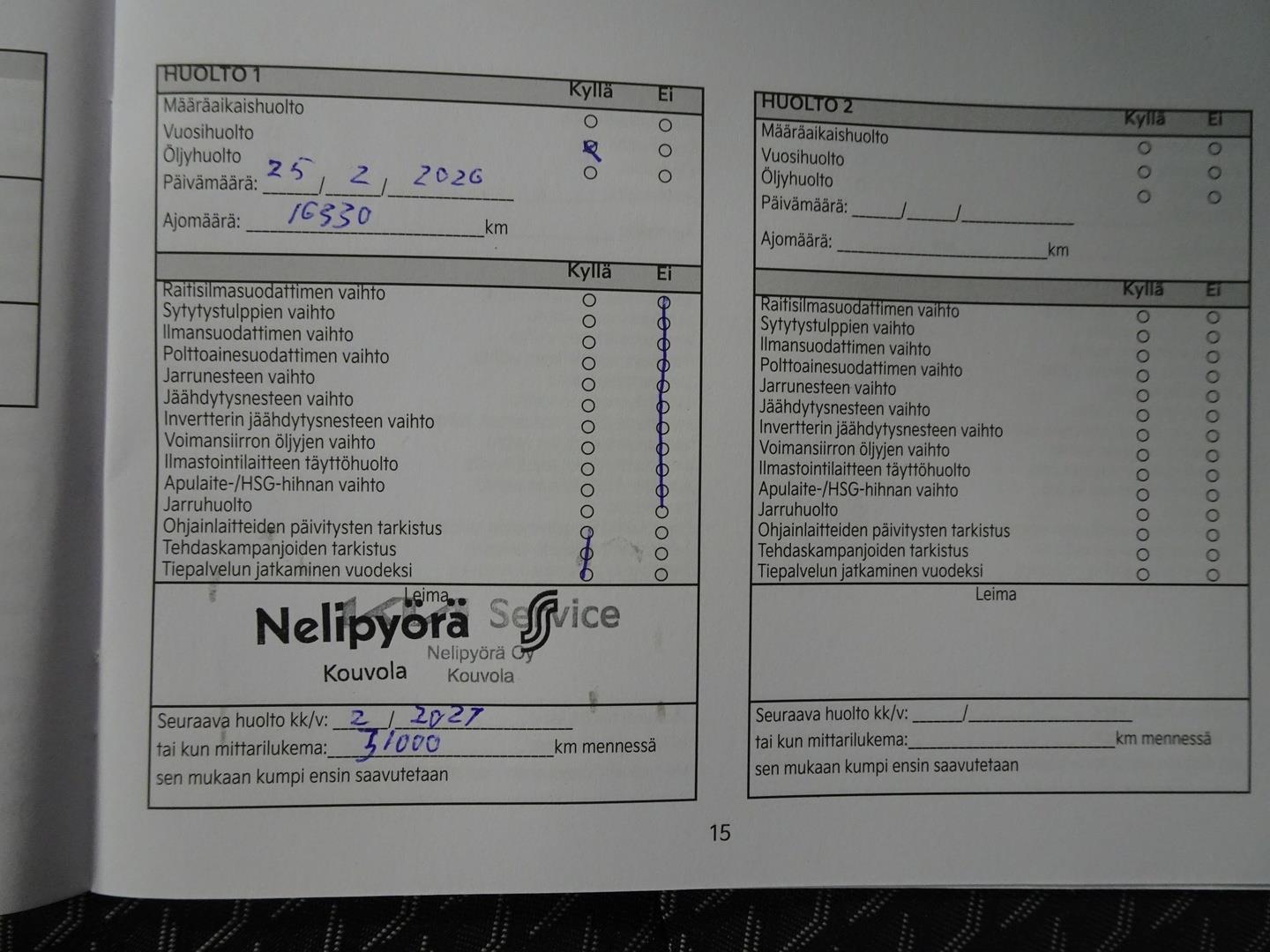 | Merkkiliikkeen huoltokirja - Viimeisin huolto tehty 02/2026 |