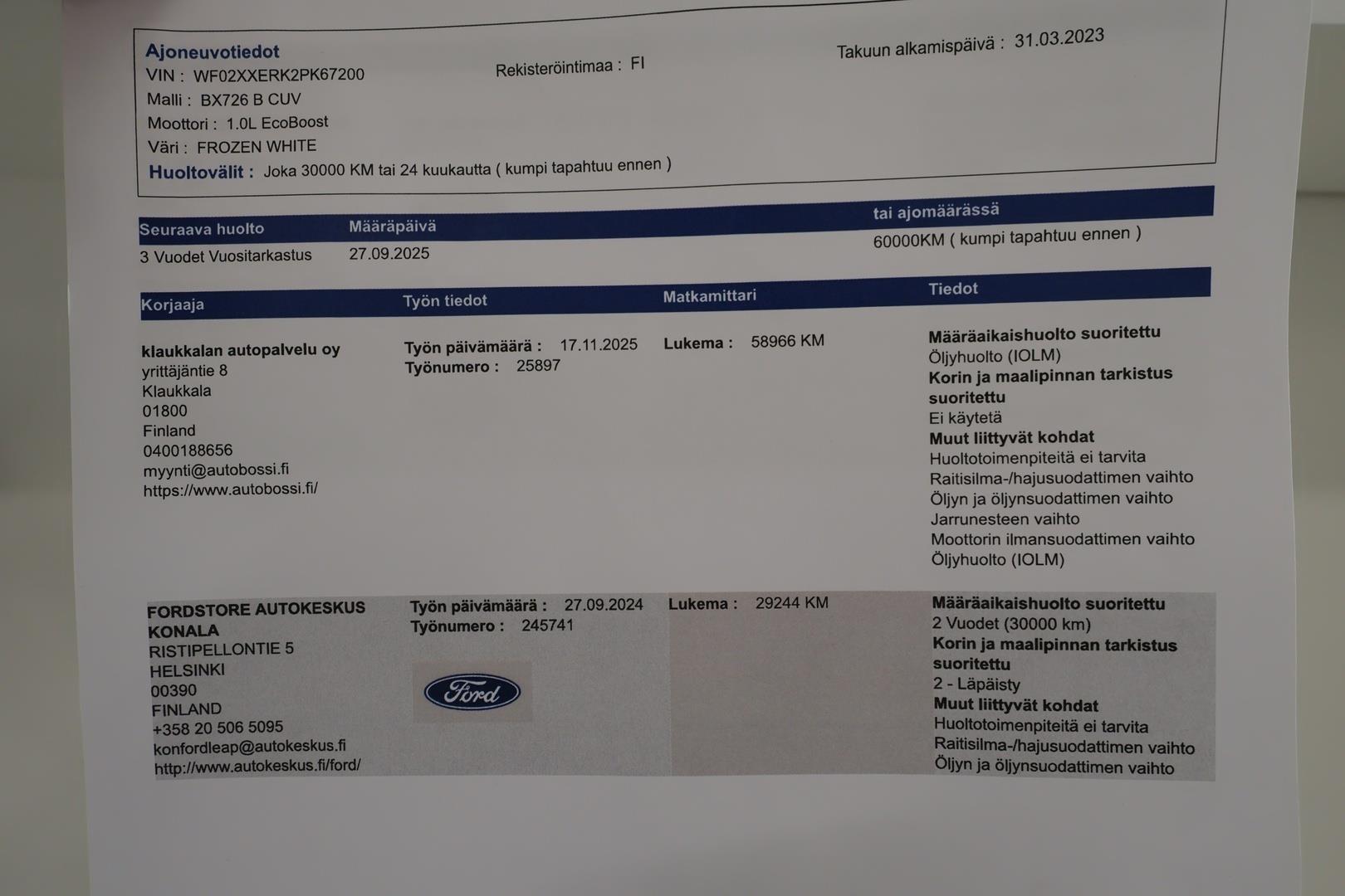 | Viimeisin huolto tehty 17.11.2025 |