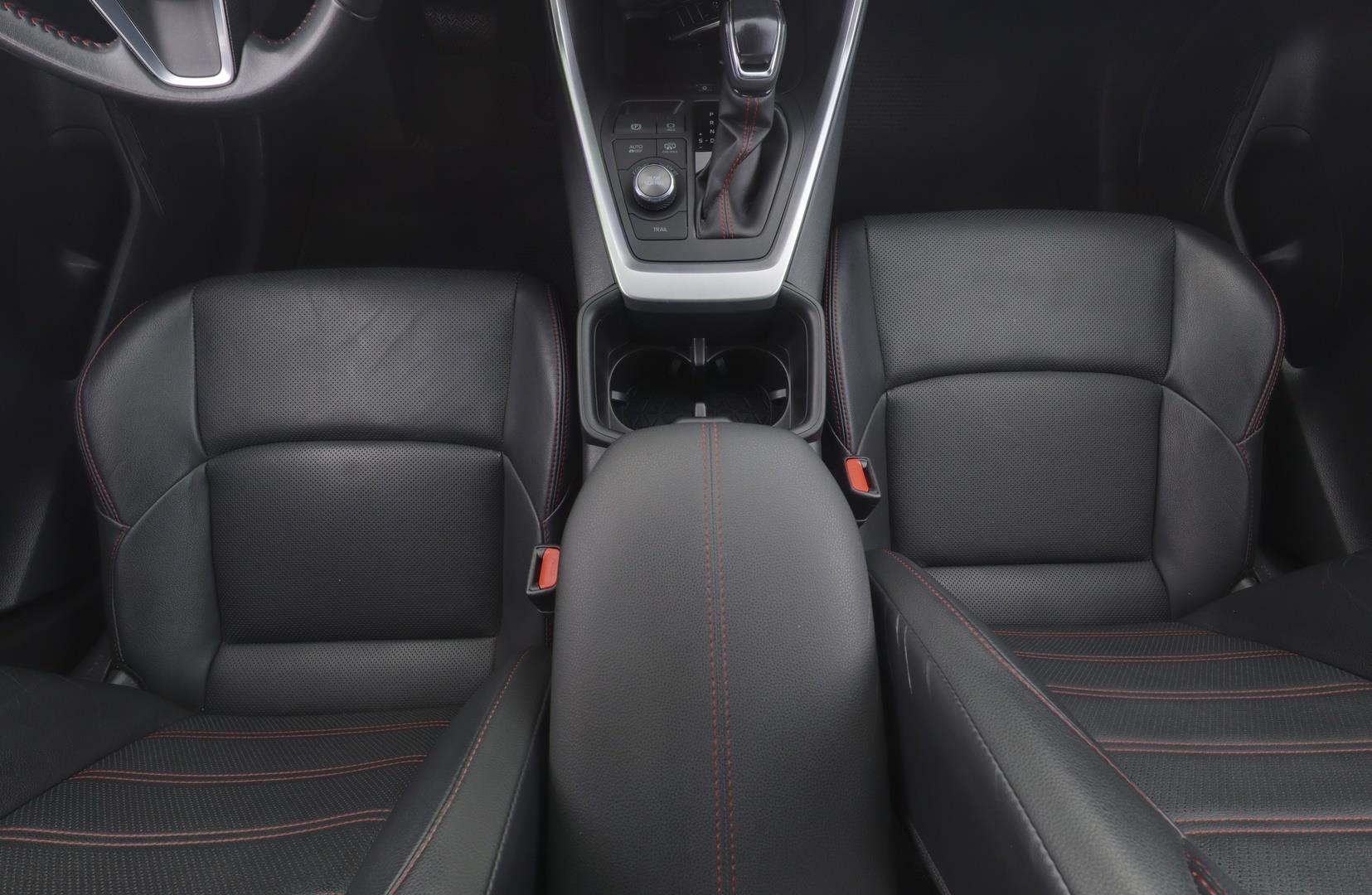 | Nahkaverhoilu perforoidulla nahalla ja punaisilla yksityiskohdilla |
